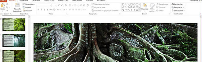 Terminons notre séance bureautique avec le troisième larron de la populaire suite bureautique de Microsoft, à savoir PowerPoint 2013. Il s'agit là de créer des diapositives très chargées en termes d'éléments multimédias.