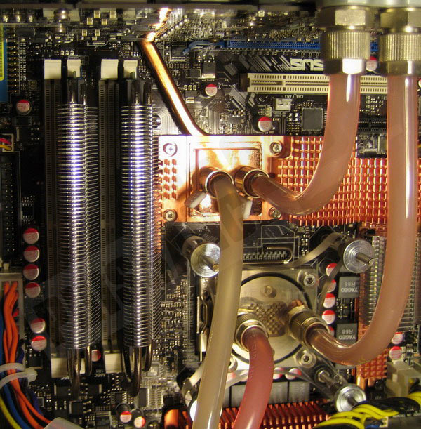 Voyons l'impact une fois les barrettes montées et donc le principal défaut du système ReaperX : impossible d'espérer utiliser 4 sticks avec ce système et un espacement "standard" entre les emplacements mémoire. Si pour un Kit 4Go comme celui-ci c'est peu gênant, il en sera peut être autrement pour des kits de capacité moindre.
