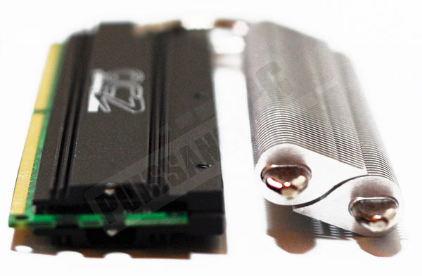 Si on s'attarde plus sur chaque barrette, on retrouve le sticker OCZ collé sur un radiateur latéral duquel s'extrait un heatpipe aboutissant au radiateur surplombant le stick. Voyons cela en détail.