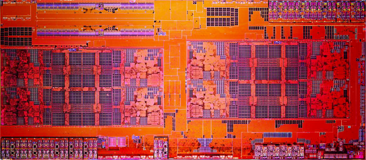 Toujours est-il que cette évolution du procédé de fabrication permet théoriquement un gain en densité et de performance des transistors. C'est uniquement cette dernière spécificité qui a été retenue par AMD, probablement pour une question de délai, le process n'étant pas encore complétement validé sur l'aspect densité. Cela conduit en pratique à une die strictement identique (optiquement) au précédent, par contre, il est possible d'augmenter la fréquence par rapport au Zeppelin originel dés à présent.