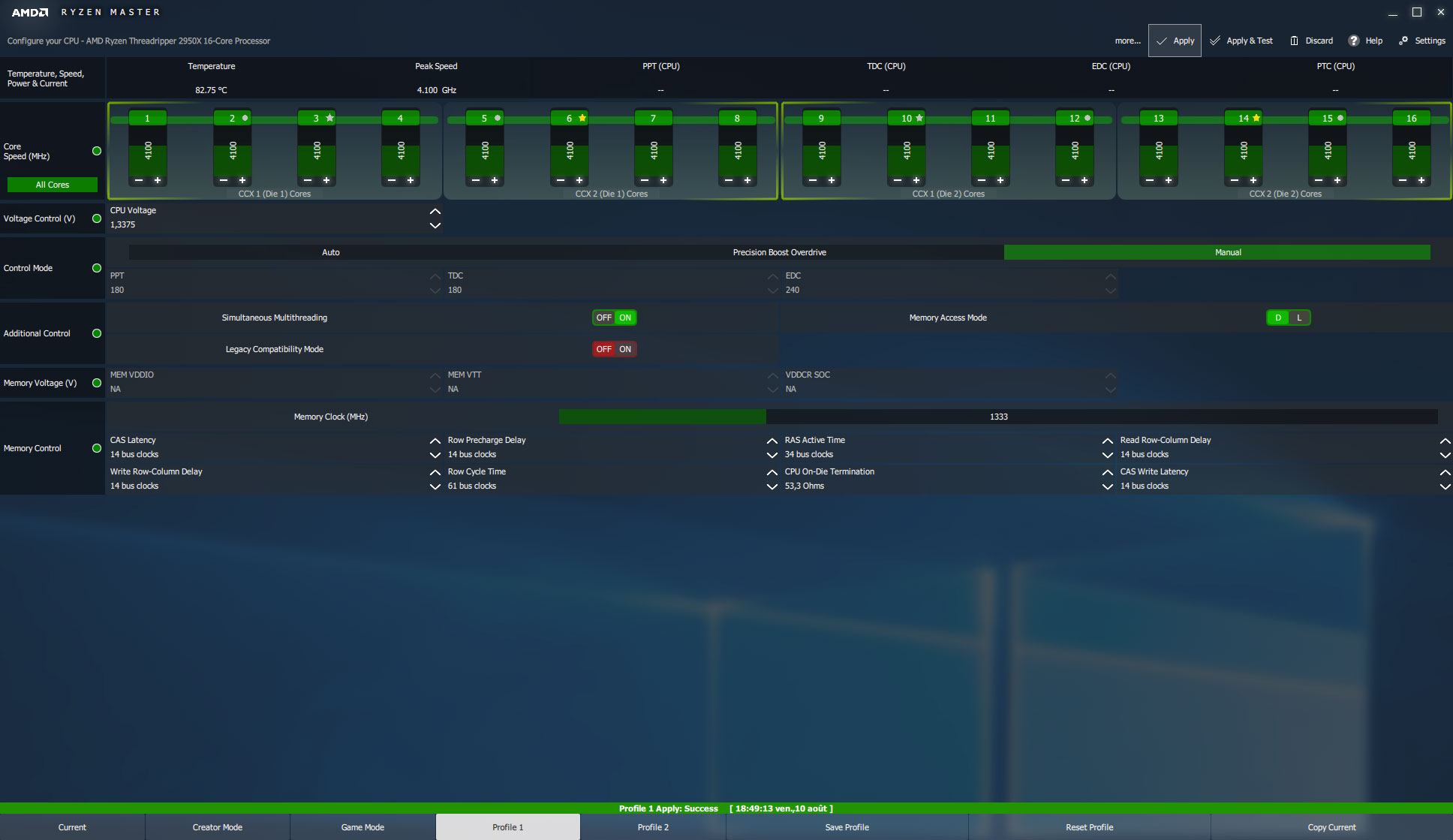 Threadripper 2990WX sous Ryzen Master