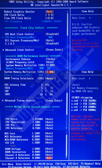 Ci dessous, 3 images illustrant le motherboard intelligent tweaker, LE menu que vous parcourrez certainement le plus souvent où vous aurez accès à l'ensemble des paramétrages processeur, mémoire, tension... Dont les options ne manquent pas.