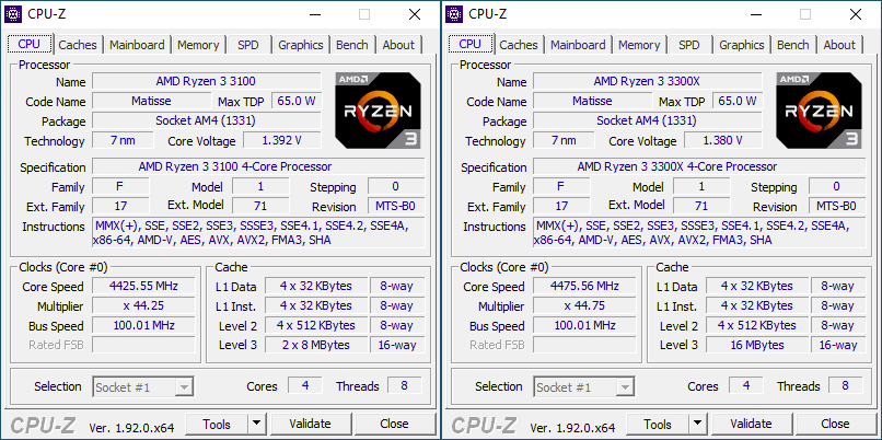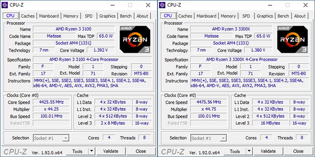Fréquences des Ryzen 3 3100 & 3300X après surcadençage