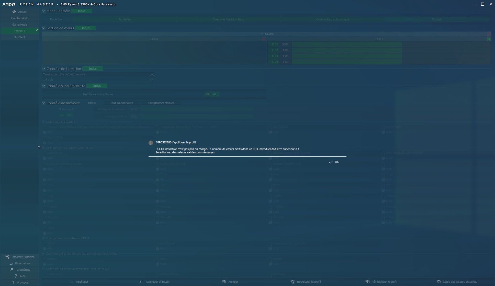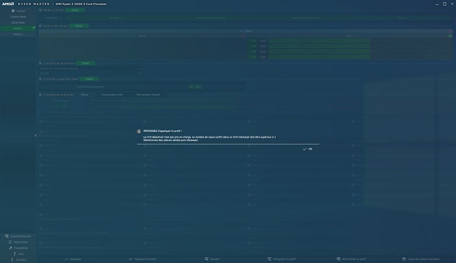Concernant l'overclocking, un bug au sein de la version actuelle de Ryzen Master, nous a empêché d'overclocker manuellement le 3300X par ce biais. Une version corrigée ne devrait toutefois pas tarder.