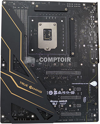 La face arrière est, elle aussi, partiellement recouverte d'un bouclier métallique, censé protéger des perturbations électromagnétiques. Ah les LED, le rêve de toute une vie devenu réalité ! Toujours est-il que la mode est à ces dernières et qui répondent au poétique nom de Mystic Light chez MSI. Sur cette carte, elles se répartissent en 2 zones situées sur le radiateur du chipset et au-dessus du panneau de connexion arrière.