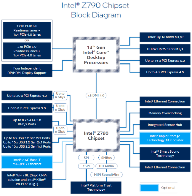 Diagramme logique du Z790 couplé à un CPU Raptor Lake