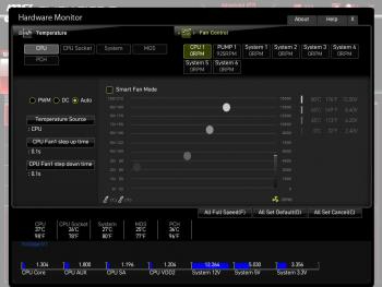 Coté BIOS, c'est l'habituel Click BIOS 5 et les habitués de la marque ne seront donc pas dépaysés. On y retrouve un mode simplifié plutot clair, tandis que le mode avancé regorge de réglages, notamment la partie tyeaking/OC qui permet de faire peu our prou ce que vous voulez. La page de monitoring est assez riche et permet d'assez bien réglé sa ventilation, directement depuis le BIOS et avec suffisamment de granularité. Par contre, l'interface de mise à jour du BIOS est assez horrible et mériterait d'être revue. Heureusement qu'on ne s'en sert qu'assez rarement.