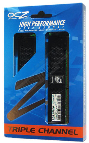 OCZ est probablement avec Corsair la marque la plus connue lorsque l'on pense aux mémoires performantes pour PC. Nous nous sommes donc procurés un kit DDR3 de 6 Go auprès de ce dernier et parmi la multitude disponible au sein de sa gamme, nous avons retenu le kit OCZ3X1333LV6GK. Ce dernier supporte donc la norme DDR3-1333 et bien sûr se compose de 3 barrettes de 2 Go pour atteindre les 6 Go. Voyons tout d'abord l'emballage du kit :