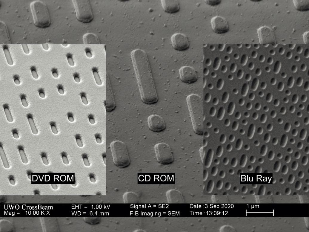 Comparaison de densité entre CD-Rom, DVD-Rom et Blu-Ray ©Nanofabrication