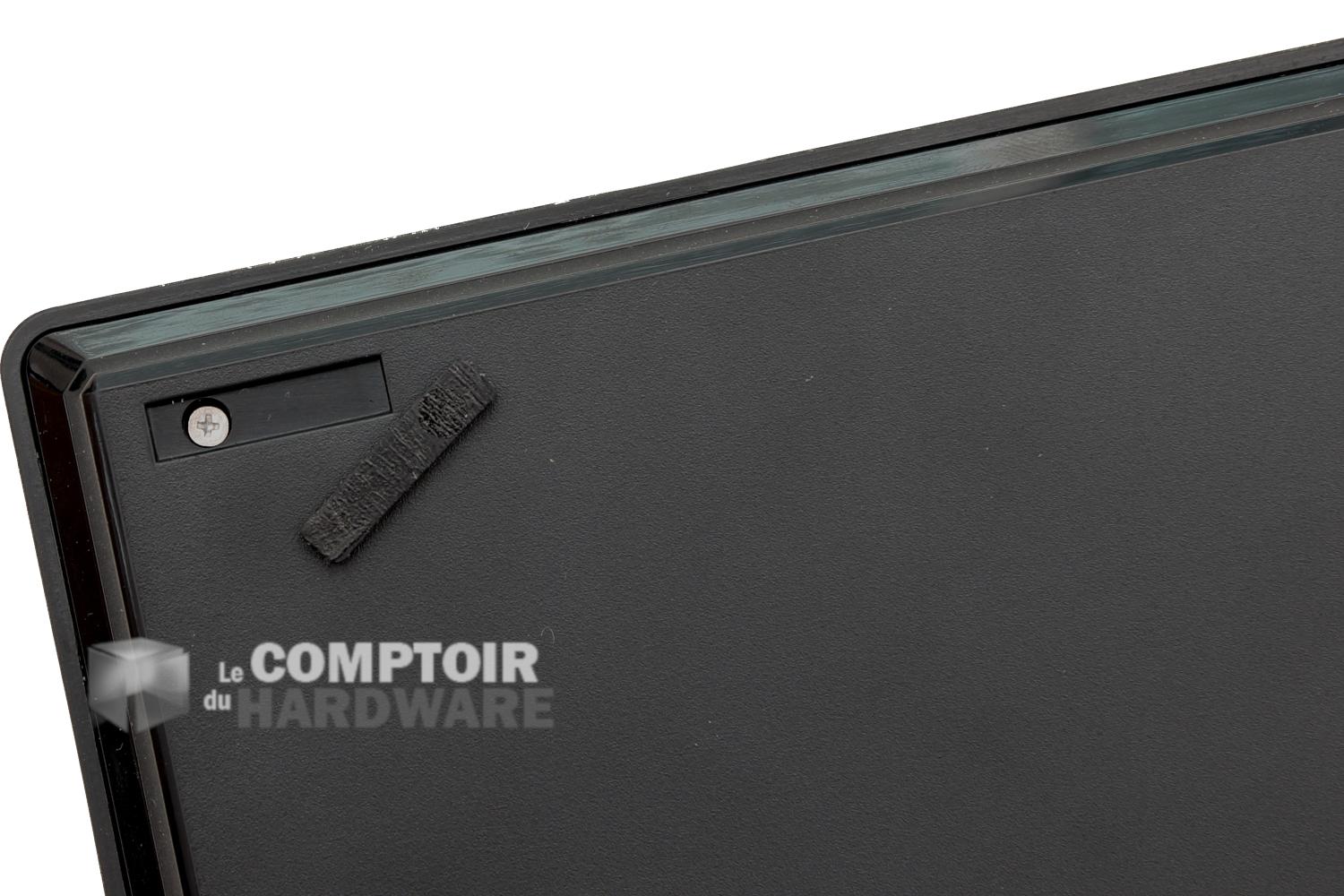 Un fois la partie d'utilisation standard couverte, passons au démontage. Selon votre point de vue, vous pourrez trouver que Cherry a fait un excellent ou détestable travail en cachant absolument toutes les vis nécessaires au démontage, deux sous l'étiquette au dos et une en dessous de chaque cale en caoutchouc. Si nous avions peur que ces dernières, simplement collées, ne survivent pas au démontage, tel n'as pas été le cas, l'adhésif utilisé fait encore parfaitement son job en dépit d'un arrachage en règle. Un bon point pour la durabilité donc.
