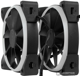 La mise en place des Aer 2 RGB se passe le plus simplement du monde. Il suffit de placer vos ventilateurs comme vous l'entendez, vous les branchez en série, vous raccordez le tout au boîtier et roulez jeunesse ! Il vous sera possible de gérer quatre éléments par canaux sur le boîtier livré avec les kits de ventilateurs. L'intérêt apporté par le RGB adressable est ici mineur, donc inutile de remplacer vos Aer RGB de première génération.