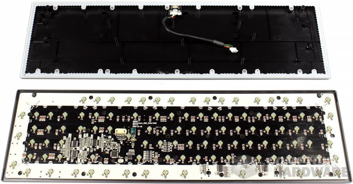 Un petit mot tout de même sur les soudures des câbles côté sortie USB; deux d'entre elles ont lâché assez facilement sans torture particulière de notre part (hormis le démontage du clavier, bien entendu), c'est un peu dommage alors que tout le reste laissait une bonne impression. Peut-être une faiblesse isolée de notre modèle ? Bien sûr, cela ne devrait pas arriver dans le cadre d'un usage normal, évitez tout simplement de démonter votre clavier si vous n'avez pas une bonne raison pour le faire et n’êtes pas un amateur de soudure.
