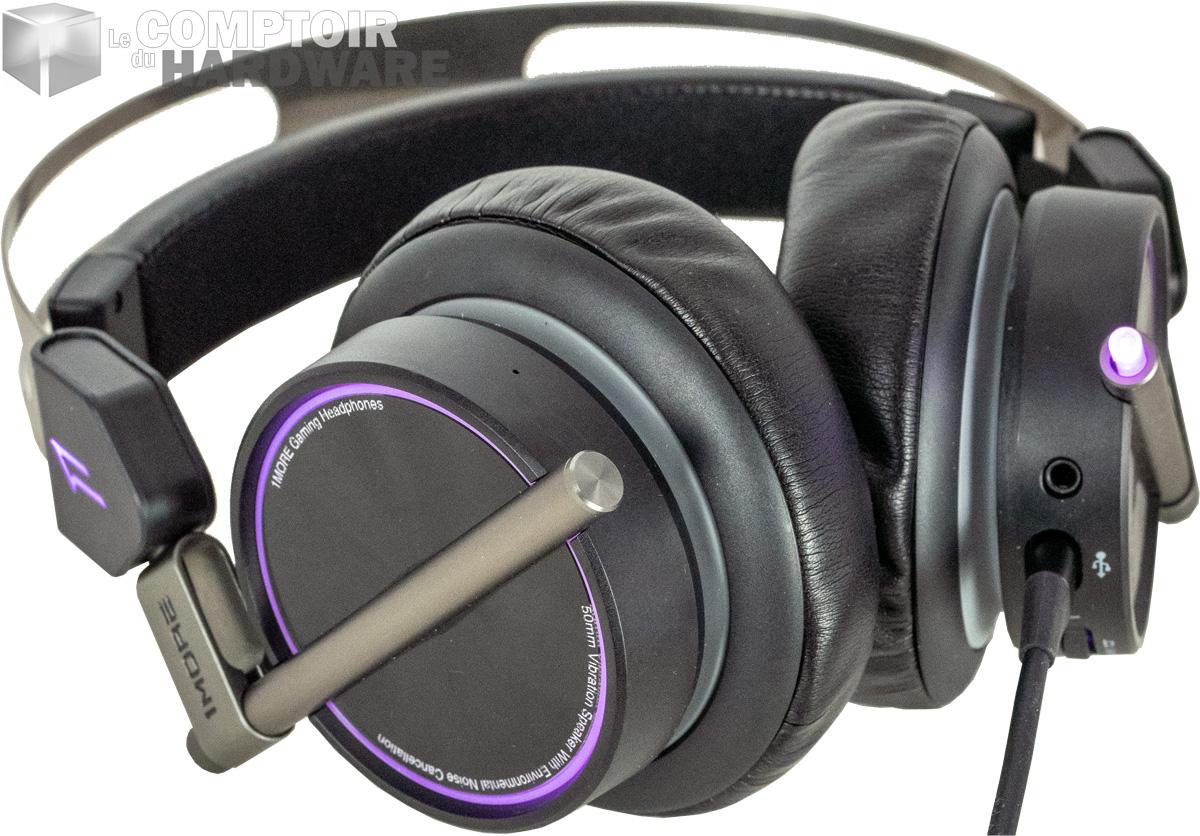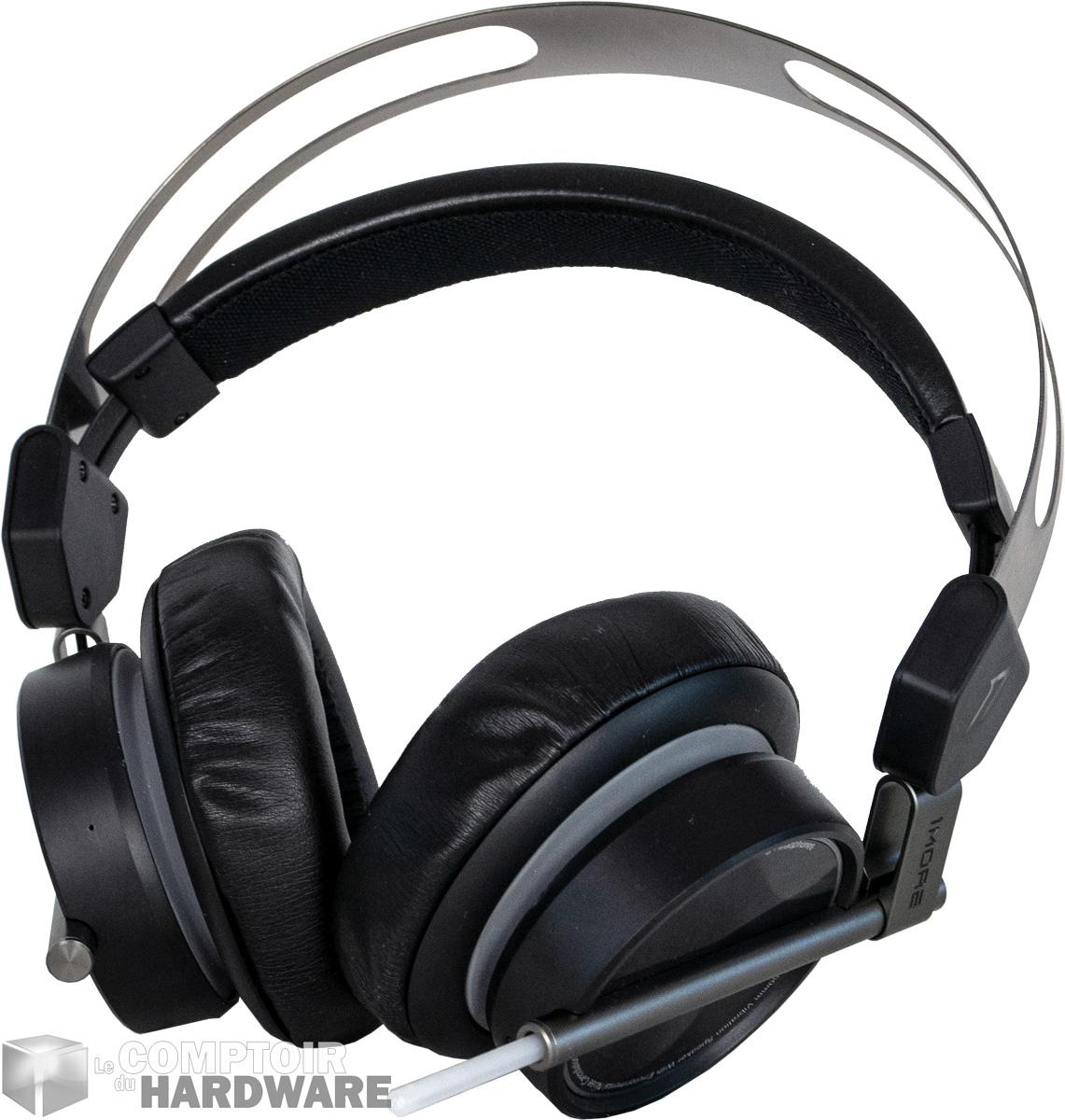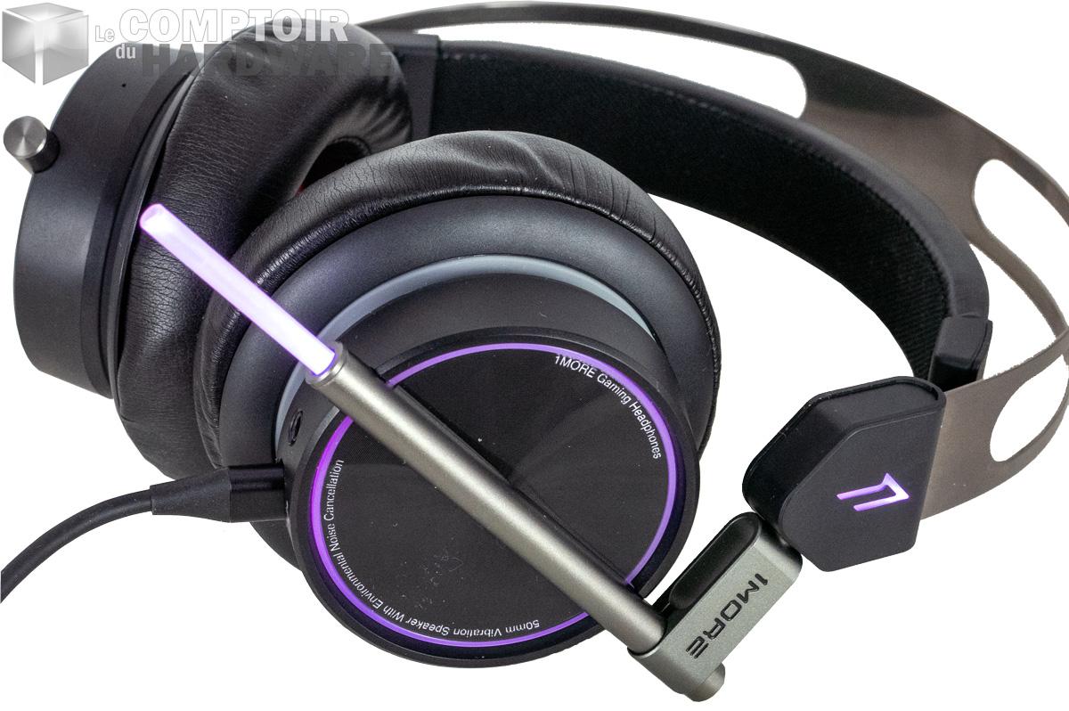 Malgré tout, le beau se permet une touche contemporaine de RGB qui sait rester discrète, avec des illuminations au niveau des écouteurs et de la jonction avec le cerceau, ainsi qu'une barre rétractable illuminée dont l'intérêt sera juste cosmétique - le micro n'étant pas incorporé en son sein. L'isolation sonore active est suffisamment efficace en environnement d'intérieur, mais elle requiert l'utilisation d'un port USB pour fonctionner - le casque n'a en effet pas de batterie intégrée - ce qui rend impossible son utilisation en dehors d'un PC (sous Windows qui plus est). Et c'est bien dommage, car le casque ne dispose pas d'isolation passive à proprement parler.