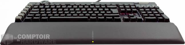 Par exemple, l’utilité d’un taux d’interrogation plus élevé est aussi largement débattable sur les souris, même s’il y a des arguments en faveur de mulots à 2000 Hz et plus pour les écrans aux taux de rafraîchissement de plus en plus élevés pour une fluidité impeccable du déplacement du curseur. Mais on voit encore assez mal ce qu’un clavier pourrait bien gagner à ce jeu, autre que de remporter une grande victoire marketing… M’enfin, rapide le K100 l’est assurément, il n’y a aucun doute à avoir là-dessus. Assez parlé technique, passons au reste de l’extérieur du clavier !