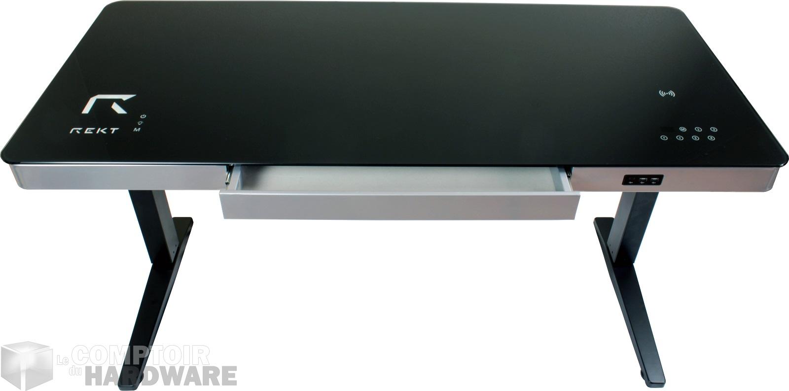 1 tiroir 54,5 x 29 x 4.5 cm 1 chargeur à induction 2 x USB 1 x USB-C (max 17,5 W) Un logo REKT RGB Commandes tactiles 4 positions memorisables |