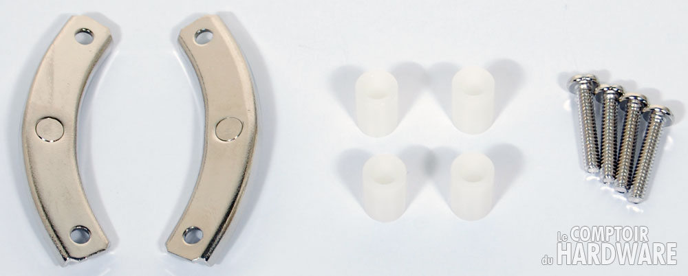 Comme vous pouvez le constater sur le premier cliché, le kit de fixation AMD est plutôt réduit en nombre de pièces, et pour cause puisque Noctua réutilise la backplate (plaque se situant au dos de la carte mère) d'AMD.