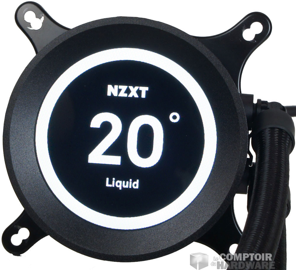 Les Kraken X-3 se voient parés d'un dessus de pompe à effet miroir infini plus large que sur les précédentes versions. Vous pourrez toujours régler l'éclairage selon différents effets, alors que tout le haut est rotatif. Cela permet de modifier l'orientation du logo NZXT sans avoir à vous en soucier lors du montage. Les Kraken Z-3 sont pour leur part équipés d'un écran LCD de 2.36". Il permet d'afficher plusieurs informations, comme la température CPU/GPU, la fréquence des différentes puces ou encore le taux d'occupation de celles-ci. Des effets de couleurs sont également disponibles. Nous, ce qu'on préfère ce sont les .GIF, mais nous en parlerons plus loin.
