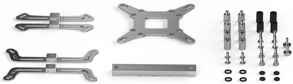 On s'attaque au montage, très largement simplifié sur cette nouvelle révision. Exit donc le passage par l'arrière du socket, plus que contraignante, vous disposez maintenant d'une backplate pour les sockets LGA-115x sur laquelle prennent place les entretoises de montage. Sur socket LGA-20xx vous disposez d'entretoises spécifiques, alors que les plaques de support se fixent directement sur la backplate d'origine AMD à l'aide des entretoises creuses cette fois.
