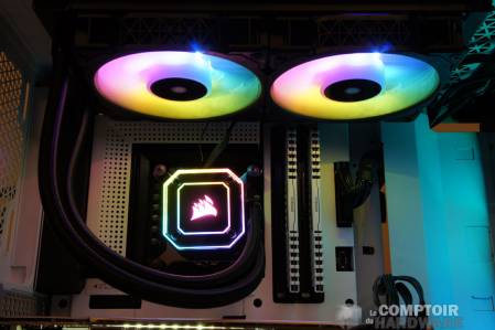 Le CORSAIR H100i ELITE CAPELLIX en place dans le iCUE 4000X
