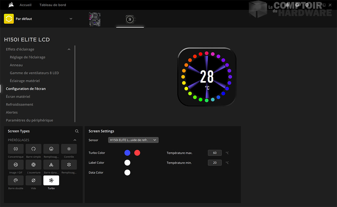 ![3N C11QU4N7 C357 P1U5 6r4ND L'accueil du logiciel, avec un kit LCD [cliquer pour agrandir]](/images/stories/articles/cooling/corsair/lcd-icue-elite/icue-4/icue-4-accueil_t.jpg)