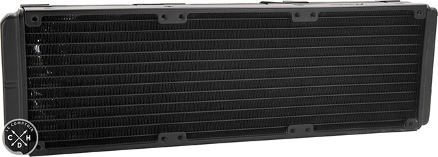 Il faut courir le long des 40 cm de câbles gainés pour rejoindre les radiateurs et découvrir les radiateurs en aluminium équipant cette série. La densité d'ailettes est de 20 FPI sur ces modèles intégrant la pompe, comme pour les Kraken M22 ou la gamme Lumen S de Fractal. Les dimensions du C240 sont de 296 mm de long, 120 de large et 27 mm d'épaisseur, le C360 fait 396 x 120 mm pour 27 mm d'épaisseur également.