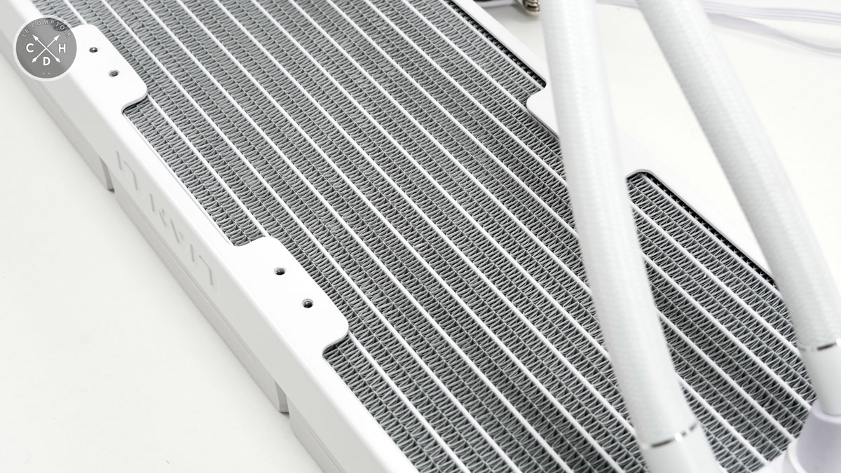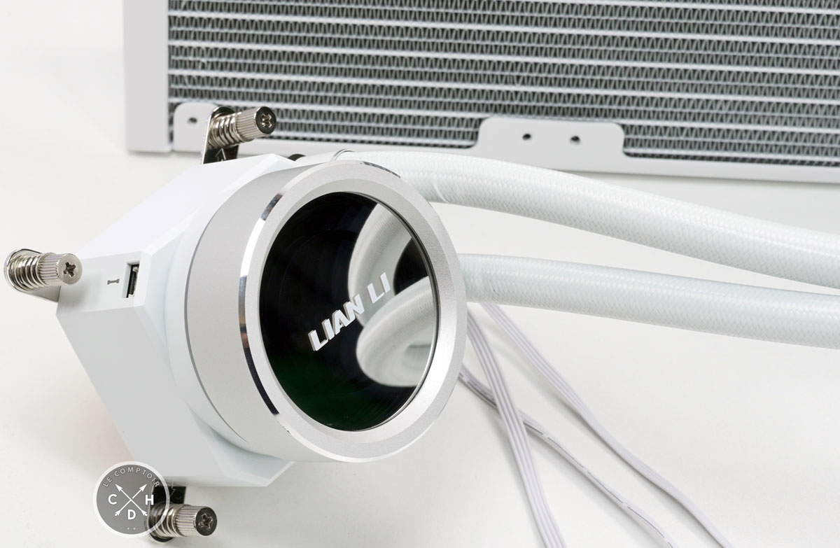 Si dans l'absolue, la singularité du bloc de refroidissement saute le plus aux yeux lors du déballage, sachez que c'est au niveau du radiateur que se trouve le plus intéressant. Mais comme nous ne voyons que ça, commençons par la pompe.
