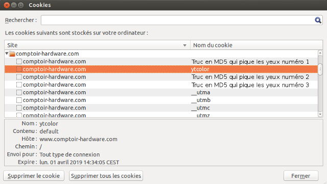 Pour en apprendre plus, penchons-nous sur les cookies que vous pourrez trouver en navigant sur CDH, ils sont regroupés sous le nom de domaine comptoir-hardware.com.
