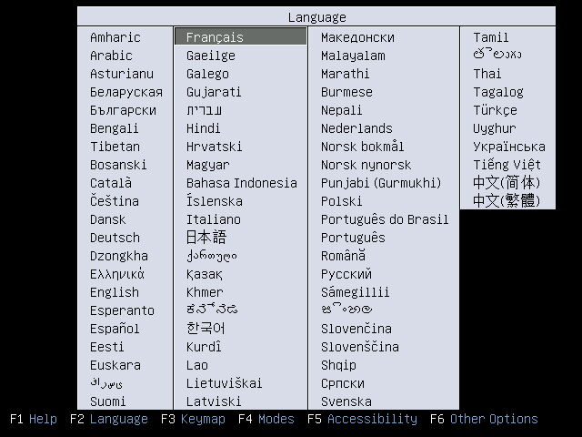 La langue, à moins que vous soyez de ces marginaux qui ont appris l'esperanto pour le plaisir de voyager de par le monde en profitant de la générosité de ceux qui parlent la même langue, vous choisirez le Français. Tripatouillage de la touche entrée et voilà la suite.