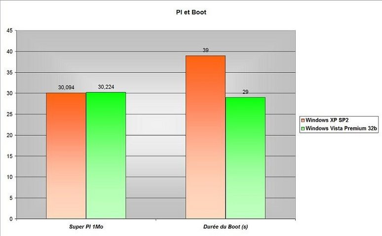 Nous avons fait également un super PI 1Mo pour voir si ce dernier avait plus d'impact qu'XP sur les performances du processeur :