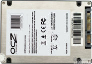 Esthétiquement, et comme toujours chez OCZ, difficile de différencier les modèles hormis l'étiquette et la couleur de cette dernière. On retrouve ainsi un boiter métallique 2.5" teinté noir en face supérieure et chromé en dessous. Une première étiquette rappelle le modèle et la marque sur le sommet et une seconde étiquette sous le SSD indique référence, numéro de série, etc... On distingue bien sûr les connecteurs SATA sous cette vue, le Vertex Turbo employant une interface de ce type à 300 Mo/s.