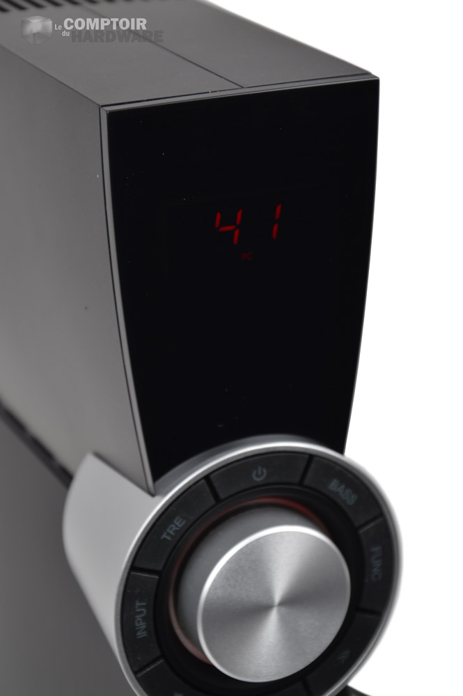 Le choix d'Edifier pour son C3X est de déporter ces deux fonctions dans un boitier indépendant, lequel viendra se positionner sur le bureau ou sous la télévision, aussi loin que possible des autres éléments. L'avantage, c'est que l'utilisateur a tout à portée de main (ou de télécommande), du réglage du volume et de l'égalisation à la connexion des périphériques USB ou SD. Le défaut, c'est que ça prend plus de place. Surtout que le design général ne fait pas dans le compact.