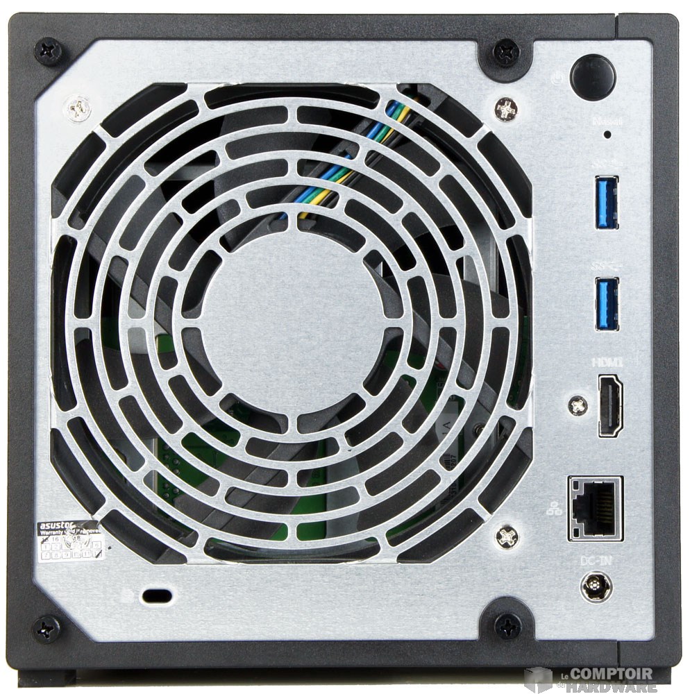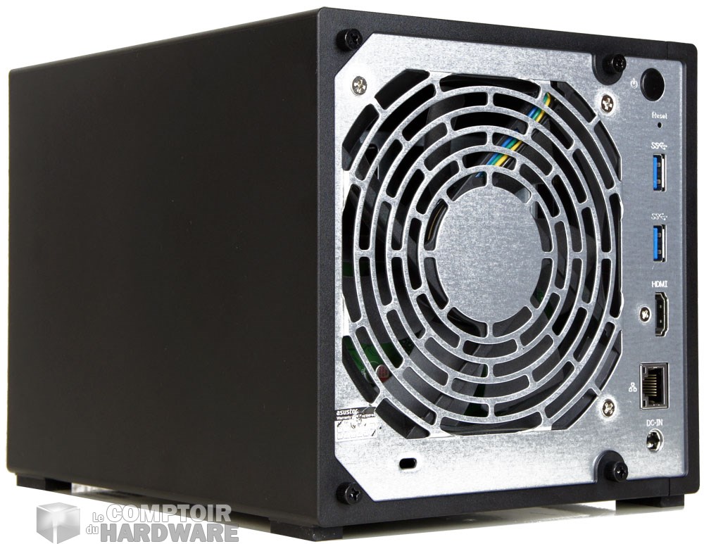 Si vous avez lu notre dossier sur l'AS1004T, rien ne nous permet de différencier le modèle du jour de celui-ci. L'AS3104T utilise le même châssis, le même look et surtout la même carcasse à carreaux. Pour les reconnaitre, il faut passer derrière. L'AS3104T, en plus du port USB 3.0 en façade, propose deux ports supplémentaires à l'arrière, une prise HDMI et un seul port RJ45. L'alimentation est externe et le refroidissement toujours assuré par un gros ventilateur de 120mm.