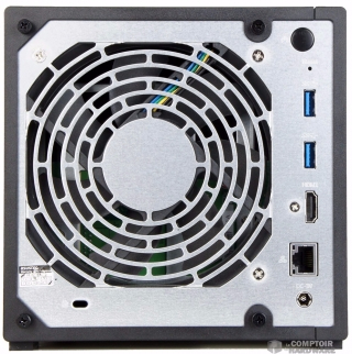 La grosse évolution se trouve à l'intérieur. L'appareil est animé par un processeur dual core Intel Braswell. Il s'agit du Celeron N3050 cadencé à 1.6Ghz, qui poussera si besoin jusqu'à 2.13Ghz, et qui est appuyé par 2Go de mémoire vive. La mise en oeuvre du NAS est toujours simplissime grâce au montage sans outil proposé par la marque et vous pourrez profiter d'un stockage allant jusqu'à 32To, toujours en unités de 3.5".