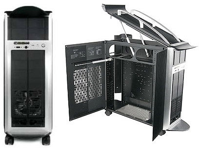 Ce monstre de 17kg, mesurant 65cm de hauteur, 24cm de largeur et 77cm de profondeur monté sur roulettes et doté d'une ouverture de ses faces par verins pour ne pas se démettre une épaule n'est pas de dernière génération, n'espérez donc pas de l'USB 3.0 d'origine par exemple (il pourra toujours être ajouté via une baie en façade ou autre si besoin...). La ventilation par contre est bien assurée dans tout cet espace, avec 5 ventilateurs 120mm fournis et la possibilité d'en ajouter bien d'autres...