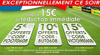 Vous êtes dégoutés par le match de ce soir ? Cdiscount a prévu les mouchoirs en proposant 3 réductions, valables jusqu'à 8H demain matin. Ces réductions sont par tranche d'achat, et sont comme vous allez le constater bien supérieures à celles que l'on peut croiser en moyenne: