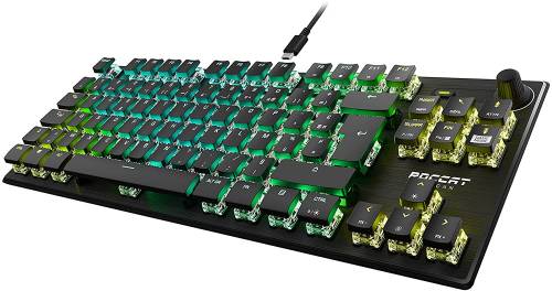Comme on n'est pas des fanboyz, on vous parle aussi de notre clavier, celui qui sert à rédiger cette brève. Le Roccat Vulcan TKL voit son prix fondre comme neige au soleil. La version TKL, toujours dépourvue de pavé numérique, garde le design aérien du Vulcan 120, grâce aux touches framless en PBT dont il est équipé. Vous pouvez trouver la version Pro avec des switchs Titan optiques à 84,99 €, la version classique quant à elle est affichée à 89,99 €, et est équipée de switchs linéaires cette fois. Nos liens sont en dessous si ce modèle vous intéresse. Et si le pavé numérique est une contrainte nécessaire à votre utilisation, le 120 AIMO lui passe sous les 100 €.